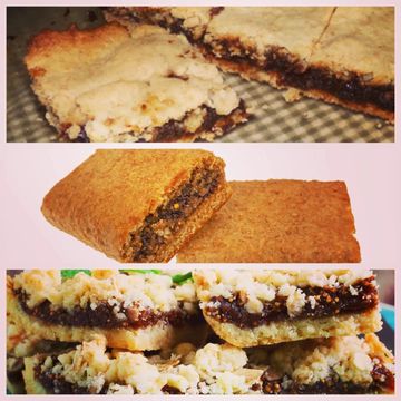 a sweet, rich fig filling sandwiched between two layers of buttery, crumbly crust. The fig filling, is made from finely chopped dried figs and a touch of spices, providing a dense, chewy texture and deep, caramel-like sweetness. Perfect for snacking or as a simple yet elegant dessert, fig squares offer a comforting, wholesome indulgence.