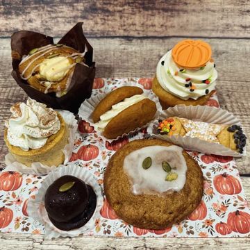 Includes: Pumpkin Cream Cheese Muffin, Pumpkin Cupcake, Pumpkin Cannoli, Mini Pumpkin Cheesecake, Pumpkin Whoopie Pie, Pumpkin Snickerdoodle, Pumpkin Truffle, and top it off with a cup of Pumpkin Spice Coffee!