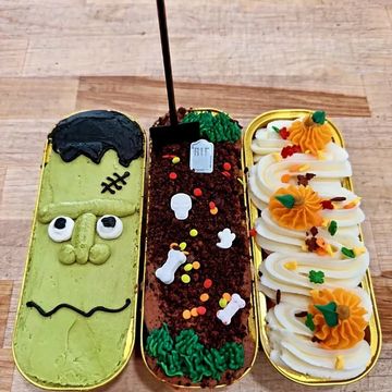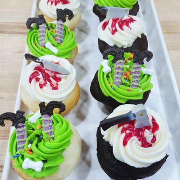 Our All Hallows Eve cupcakes are a spooky and festive treat, with styles that change each year. From eerie, dark designs with haunting frosting and creepy decorations to playful, colorful Halloween themes, each batch is uniquely crafted to capture the spirit of the season.