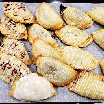 Our assorted hand pies are made with our traditional handmade pie crust, perfectly flaky and golden-brown. Each pie is filled with a variety of vibrant, homemade berry compotes—such as blueberry, blackberry, or mixed berry—bursting with fresh, natural flavors and just the right amount of sweetness. These mini pies offer a delightful balance of tender crust and rich, fruity filling, creating a comforting, homemade treat perfect for any occasion.