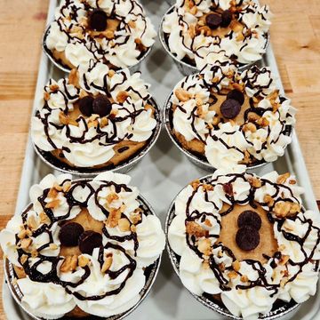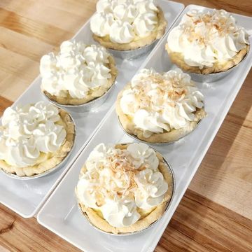This petite delight features a luscious vanilla custard filling made from ripe, perfectly sweet bananas, nestled in a buttery, flaky crust. Topped with a generous layer of fluffy whipped cream, this pie delivers a rich, smooth texture and a classic, comforting flavor. Each bite is a harmonious blend of sweet banana goodness and velvety cream, making it a delightful and satisfying mini dessert experience.