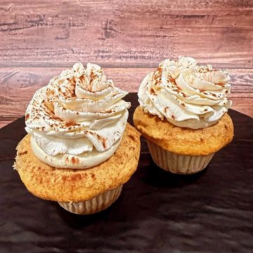 a new favorite around the bakeshop, this sponge cake cupcake is soaked in coffee syrup, stuffed with mascarpone cream filling, then topped with whipped cream and a dusting of cocoa powder. Everything you love about the classic dessert, served up in cupcake form.